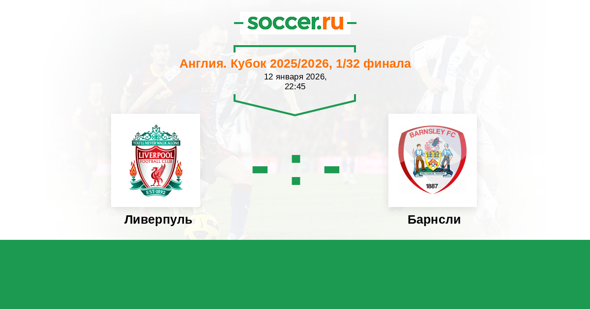 Конечно в паре Ливерпуль - Барнсли понятно, кто сильнее... Барнсли играет в Лиге 1, а Ливерпуль в АПЛ, он, по определению, сильнее... У хозяев неимоверное количество титулов, в том числе восемь Кубков Англии по футболу, но сейчас в клубе очень сложный период. Победа гостей..