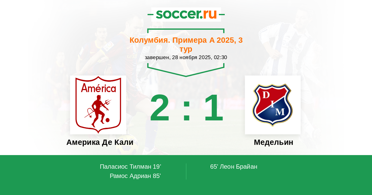 Протокол матча Америка Де Кали против Медельин
