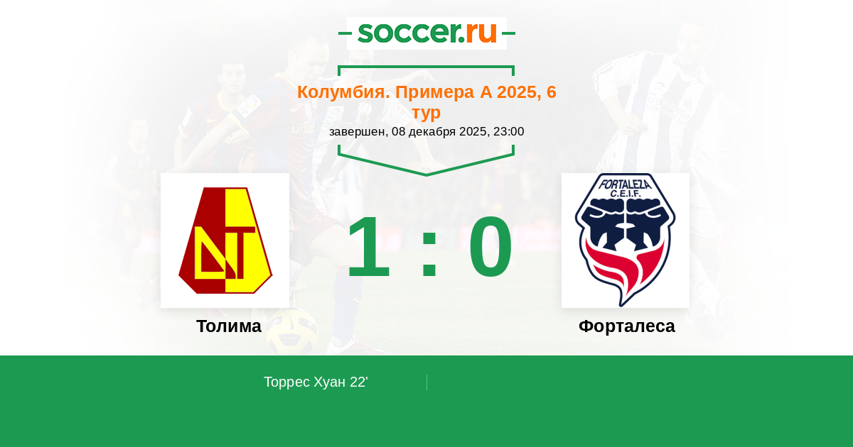 Протокол матча Толима против Форталеса