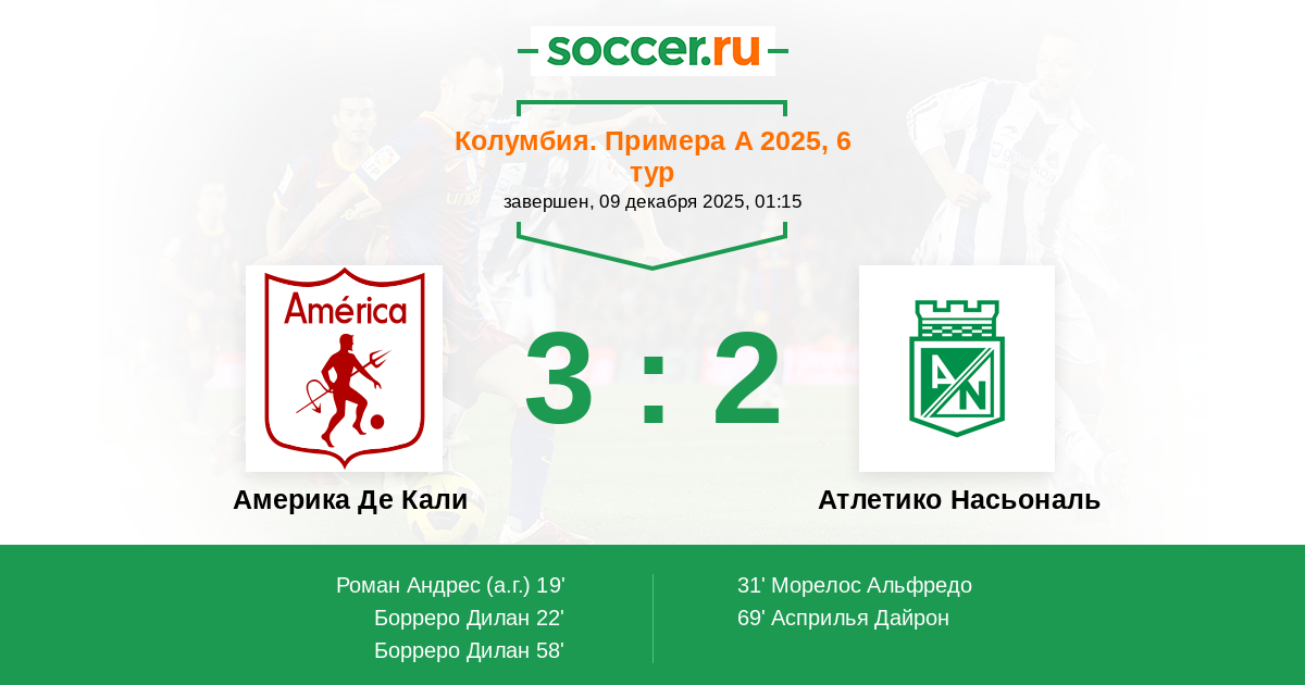 Протокол матча Америка Де Кали против Атлетико Насьональ