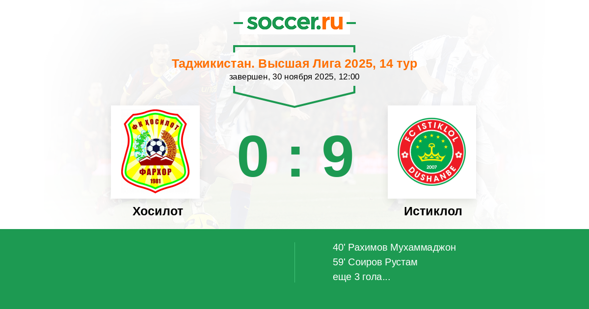 Протокол матча Хосилот против Истиклол