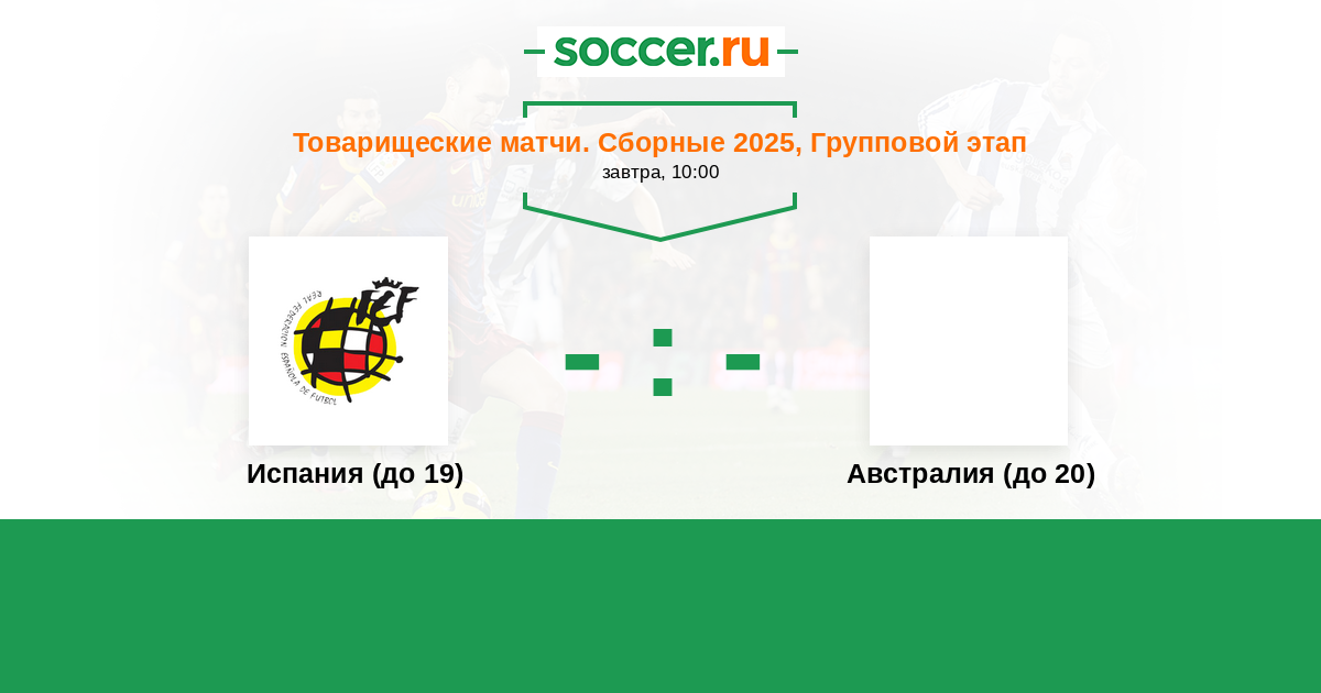 Протокол матча Испания (до 19) против Австралия (до 20)