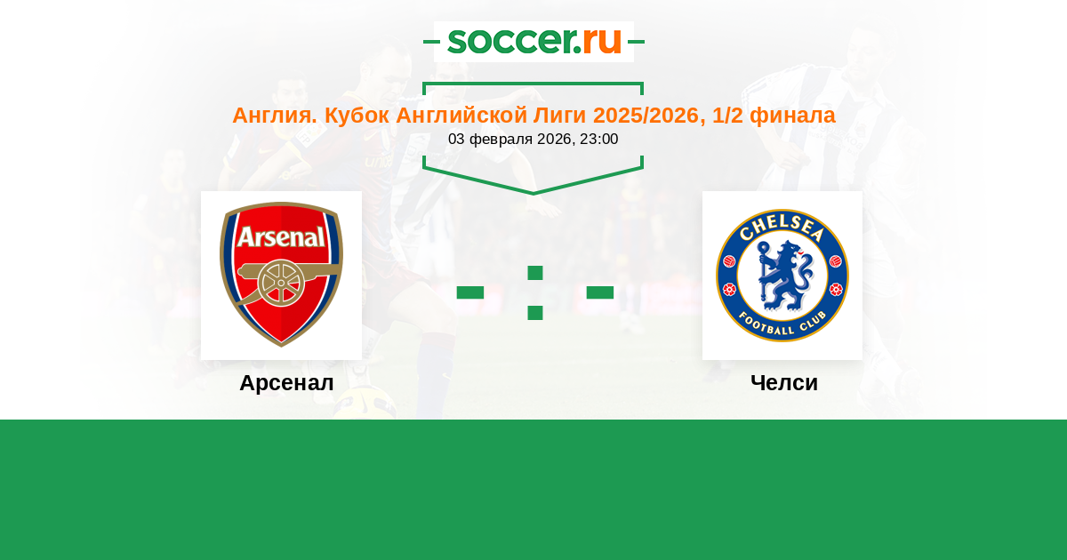 Англия. Кубок Лиги 10.01.2018 Челси Логотип футбольный клуб Челси (Лондон) 0:0 Логотип футбольный клуб Арсенал (Лондон) Арсенал