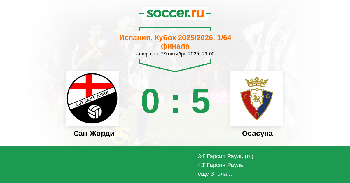 Протокол матча Сан-Жорди против Осасуна