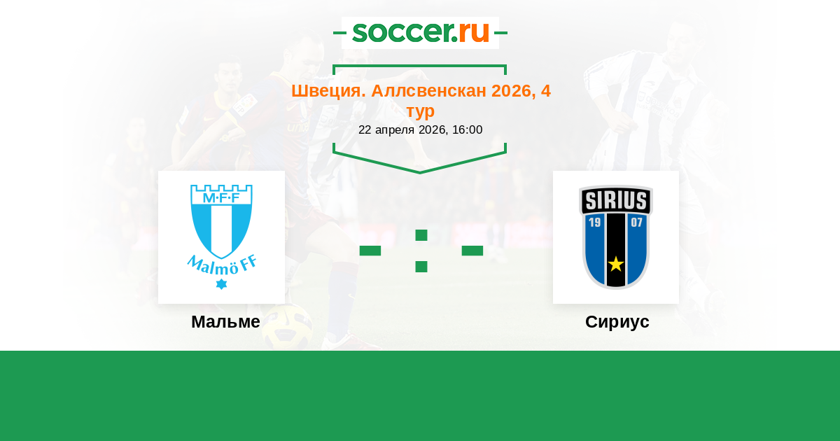 Швеция. Аллсвенскан 18.04.2025 Мальме Логотип футбольный клуб Мальме 1:1 Логотип футбольный клуб Сириус (Уппсала) Сириус