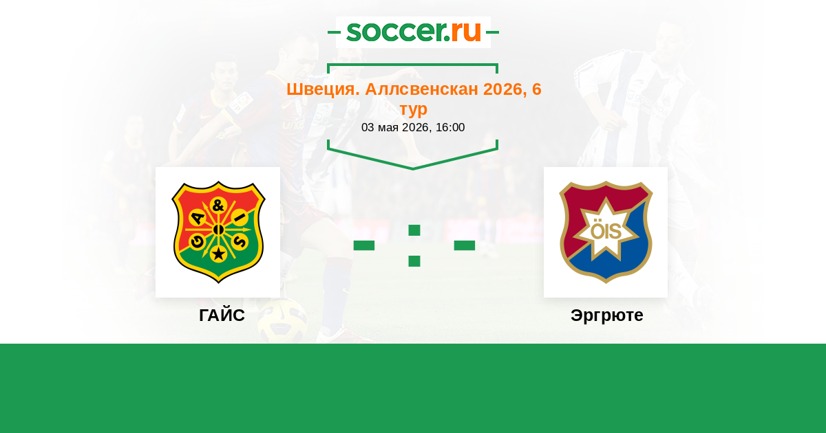 Швеция. Суперэттан 24.09.2019 ГАЙС Логотип футбольный клуб ГАЙС (Гетеборг) 0:0 Логотип футбольный клуб Эргрюте (Гетеборг) Эргрюте