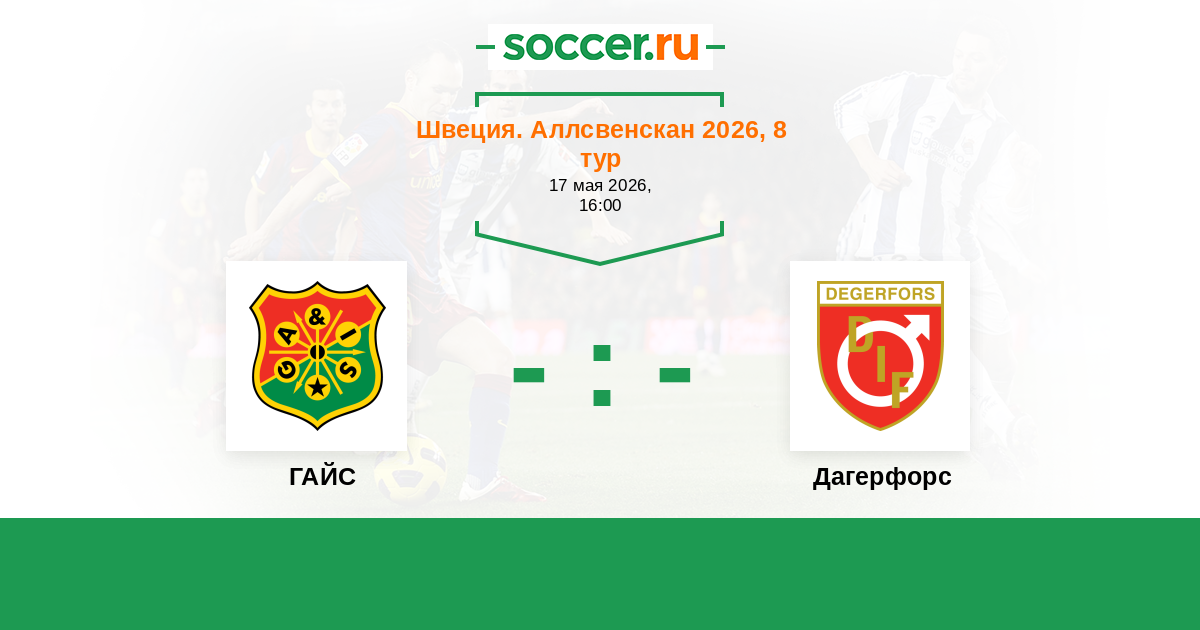 Швеция. Суперэттан 27.05.2017 Дагерфорс Логотип футбольный клуб Дагерфорс 2:1 Логотип футбольный клуб ГАЙС (Гетеборг) ГАЙС