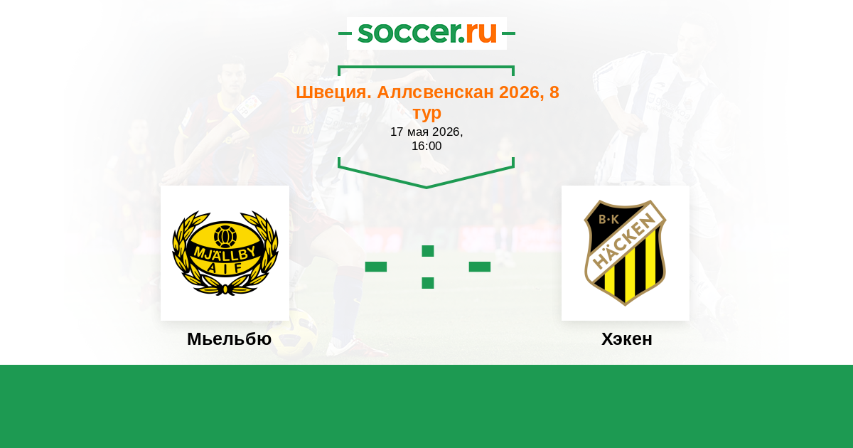 Швеция. Аллсвенскан 17.05.2021 Мьельбю Логотип футбольный клуб Мьельбю (Сельвесборг) 1:1 Логотип футбольный клуб Хэкен (Гетеборг) Хэкен