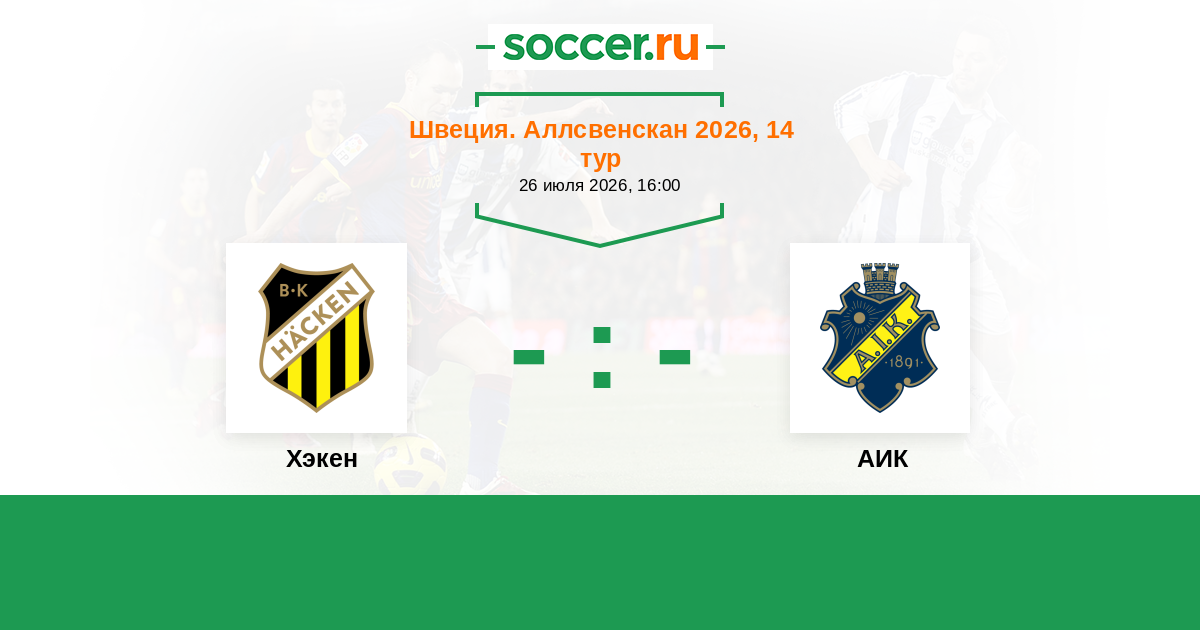 Швеция. Аллсвенскан 26.10.2025 АИК Логотип футбольный клуб АИК (Стокгольм) 2:2 Логотип футбольный клуб Хэкен (Гетеборг) Хэкен