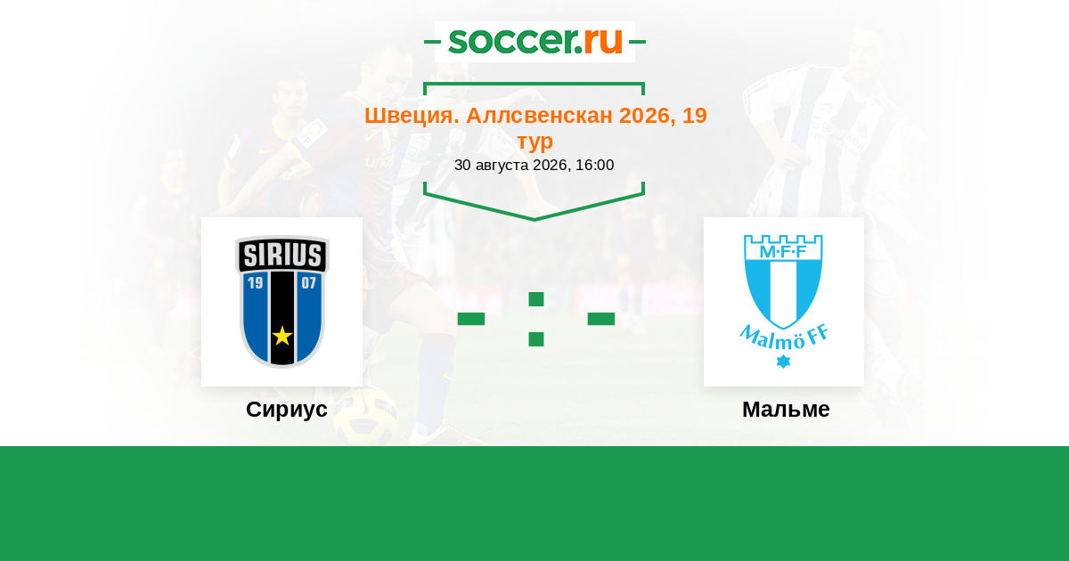 Швеция. Аллсвенскан 26.08.2018 Мальме Логотип футбольный клуб Мальме 5:0 Логотип футбольный клуб Сириус (Уппсала) Сириус