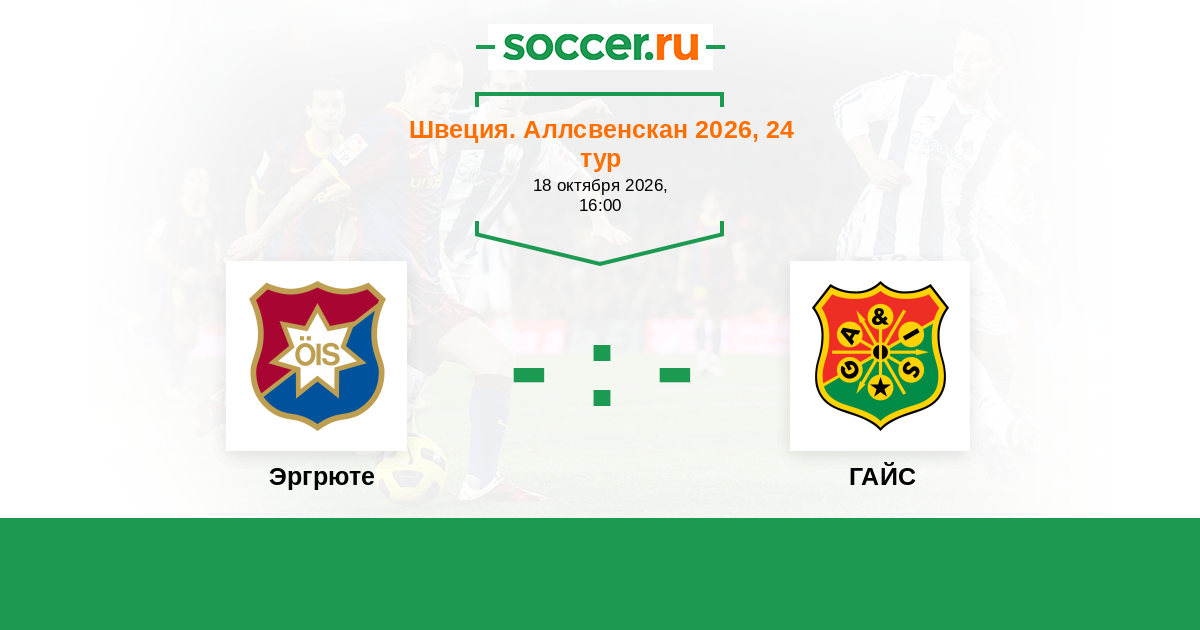 Швеция. Суперэттан 04.09.2017 ГАЙС Логотип футбольный клуб ГАЙС (Гетеборг) 1:1 Логотип футбольный клуб Эргрюте (Гетеборг) Эргрюте