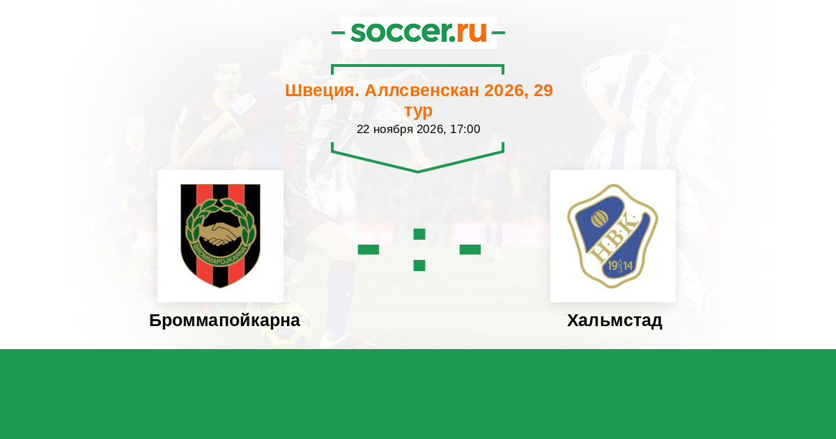Швеция. Аллсвенскан 02.11.2025 Хальмстад Логотип футбольный клуб Хальмстад 0:0 Логотип футбольный клуб Броммапойкарна (Стокгольм) Броммапойкарна