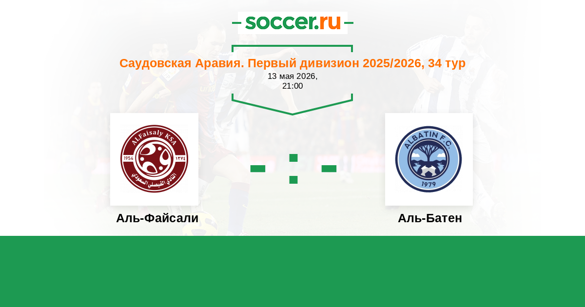 Саудовская Аравия. Первый дивизион 28.04.2025 Аль-Файсали Логотип футбольный клуб Аль-Файсали (Хармах) 1:2 Логотип футбольный клуб Аль-Батен (Хафар-аль-Батен) Аль-Батен