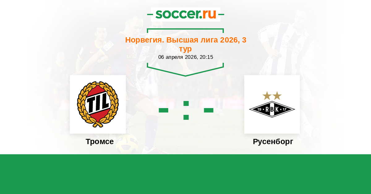 Норвегия. Высшая лига 20.05.2024 Тромсе Логотип футбольный клуб Тромсе 3:2 Логотип футбольный клуб Русенборг (Тронхейм) Русенборг