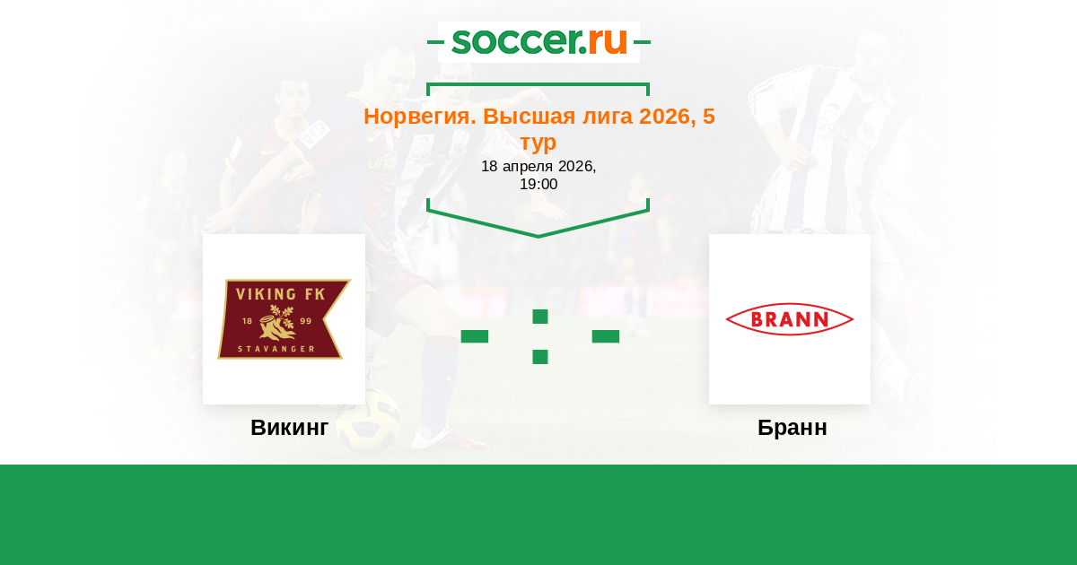 Норвегия. Высшая лига 09.05.2021 Викинг Логотип футбольный клуб Викинг (Ставангер) 3:1 Логотип футбольный клуб Бранн (Берген) Бранн