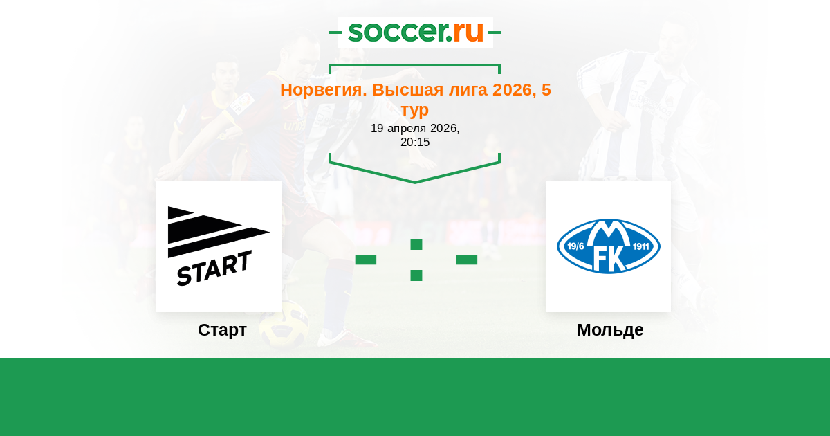 Норвегия. Высшая лига 10.04.2016 Старт Логотип футбольный клуб Старт (Кристиансанд) 1:1 Логотип футбольный клуб Мольде Мольде