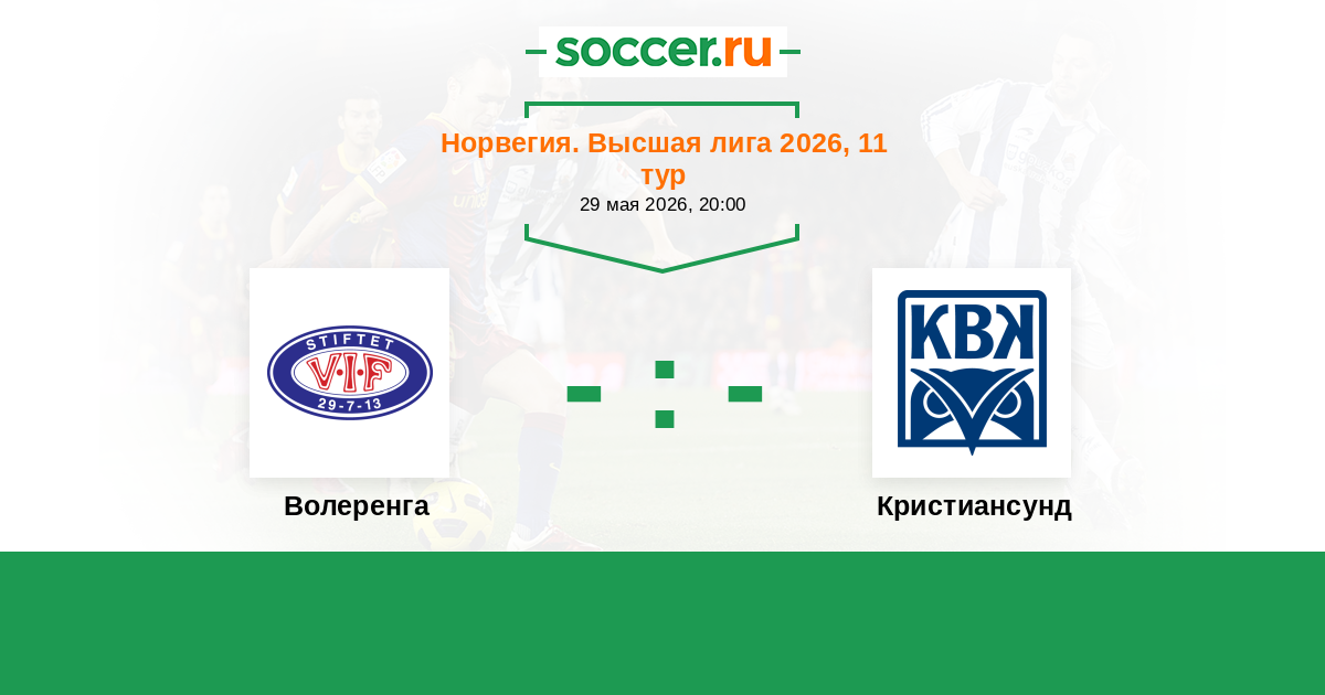 Норвегия. Высшая лига 25.10.2020 Волеренга Логотип футбольный клуб Волеренга (Осло) 1:1 Логотип футбольный клуб Кристиансунд Кристиансунд