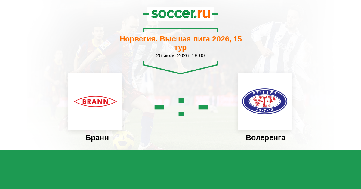 Норвегия. Высшая лига 26.08.2018 Волеренга Логотип футбольный клуб Волеренга (Осло) 2:0 Логотип футбольный клуб Бранн (Берген) Бранн