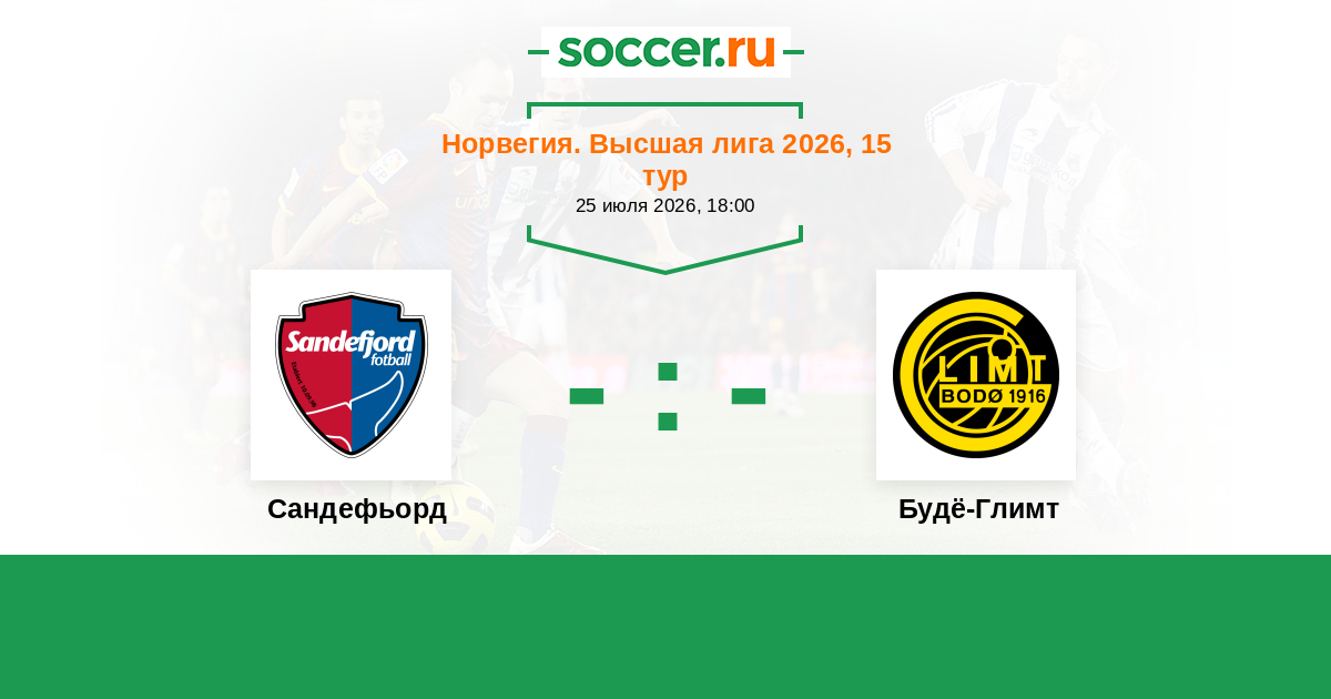Норвегия. Высшая лига 24.06.2018 Будё-Глимт Логотип футбольный клуб Будё-Глимт 1:1 Логотип футбольный клуб Сандефьорд Сандефьорд