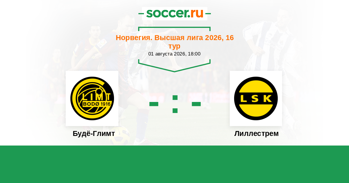 Норвегия. Высшая лига 13.08.2016 Будё-Глимт Логотип футбольный клуб Будё-Глимт 1:1 Логотип футбольный клуб Лиллестрем Лиллестрем