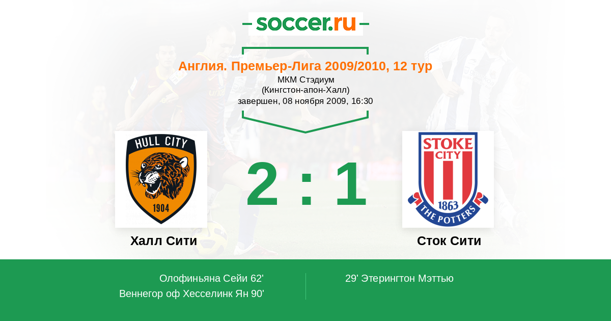Протокол матча Халл Сити против Сток Сити