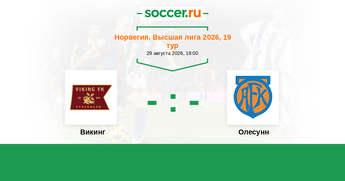 Норвегия. Высшая лига 20.09.2020 Викинг Логотип футбольный клуб Викинг (Ставангер) 5:2 Логотип футбольный клуб Олесунн Олесунн