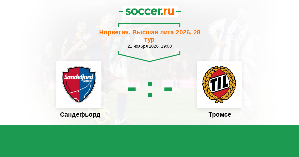 Норвегия. Высшая лига 16.07.2017 Сандефьорд Логотип футбольный клуб Сандефьорд 3:0 Логотип футбольный клуб Тромсе Тромсе