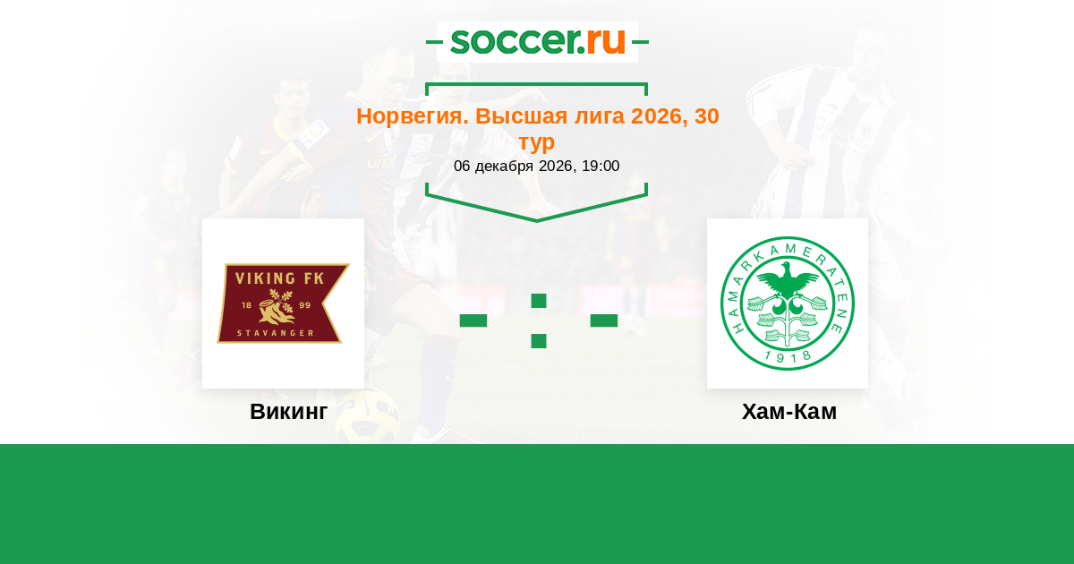 Норвегия. Высшая лига 30.04.2023 Викинг Логотип футбольный клуб Викинг (Ставангер) 7:3 Логотип футбольный клуб Хам-Кам (Хамар) Хам-Кам