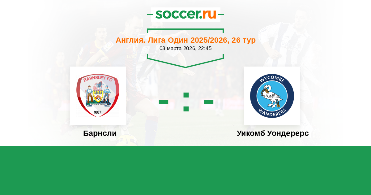 Англия. Первая Футбольная Лига 28.11.2023 Барнсли Логотип футбольный клуб Барнсли 1:0 Логотип футбольный клуб Уикомб Уондерерс (Хай-Вайкомб) Уикомб Уондерерс