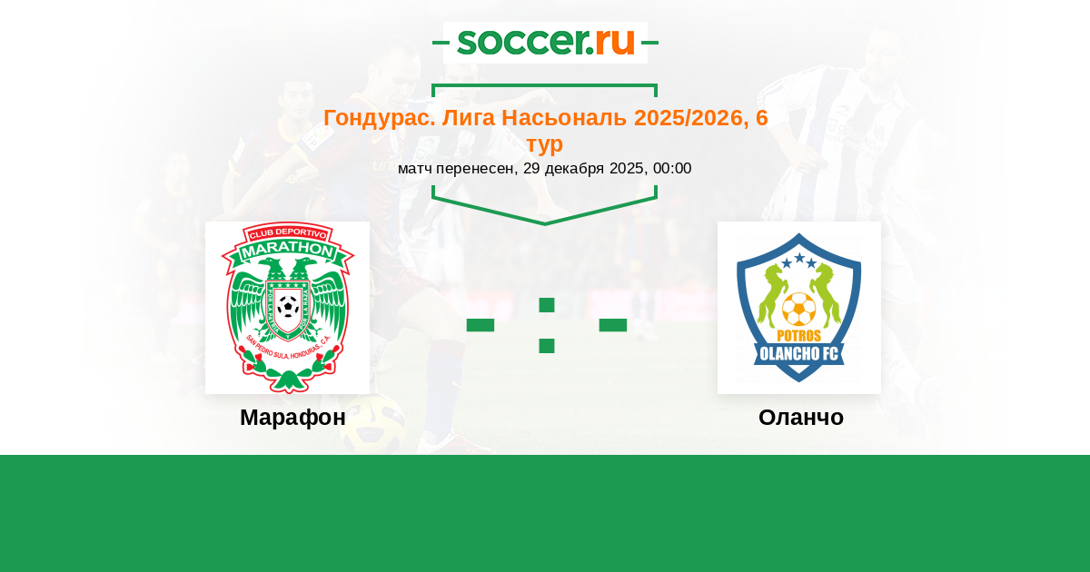 Гондурас. Лига Насьональ 12.12.2025 Оланчо Логотип футбольный клуб Оланчо (Хутикальпа) 0:3 Логотип футбольный клуб Марафон (Сан-Педро-Сула) Марафон