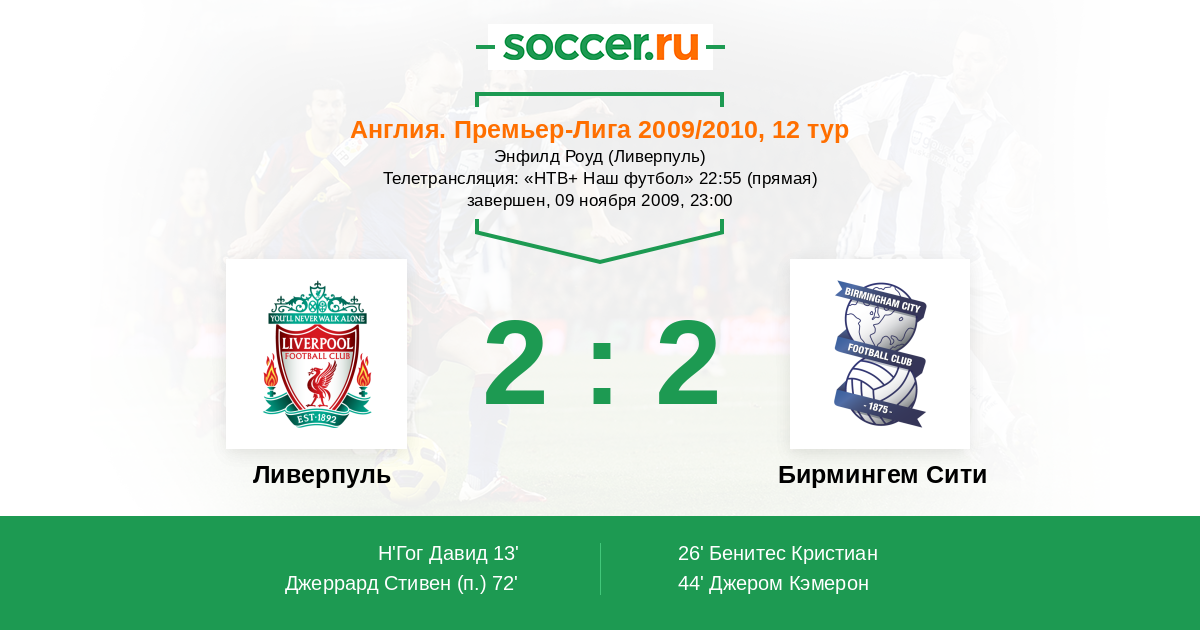 Протокол матча Ливерпуль против Бирмингем Сити