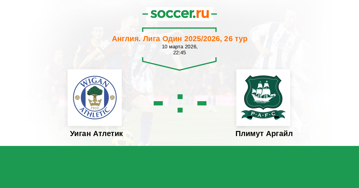 Англия. Первая Футбольная Лига 09.03.2021 Плимут Аргайл Логотип футбольный клуб Плимут Аргайл 0:2 Логотип футбольный клуб Уиган Атлетик Уиган Атлетик