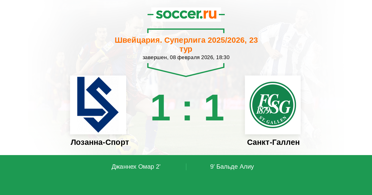 Швейцария. Суперлига 31.08.2025 Лозанна-Спорт Логотип футбольный клуб Лозанна-Спорт 1:2 Логотип футбольный клуб Санкт-Галлен Санкт-Галлен