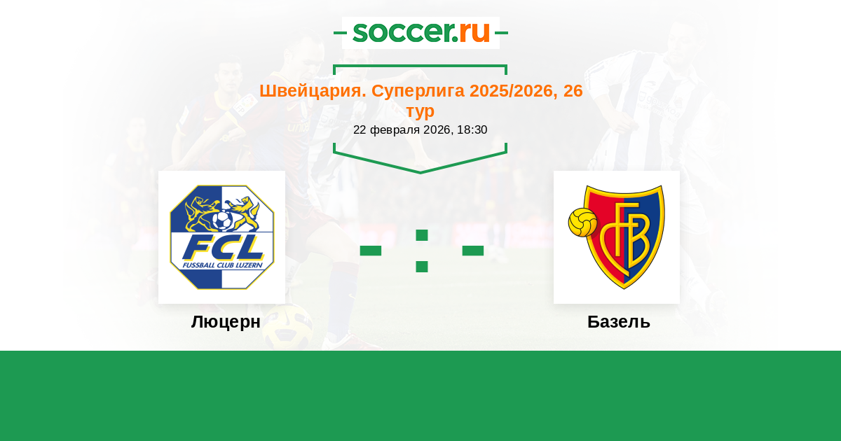 Швейцария. Суперлига 30.01.2022 Люцерн Логотип футбольный клуб Люцерн 0:3 Логотип футбольный клуб Базель Базель