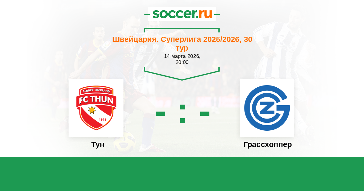 Швейцария. Суперлига 14.03.2015 Тун Логотип футбольный клуб Тун 2:2 Логотип футбольный клуб Грассхоппер (Цюрих) Грассхоппер