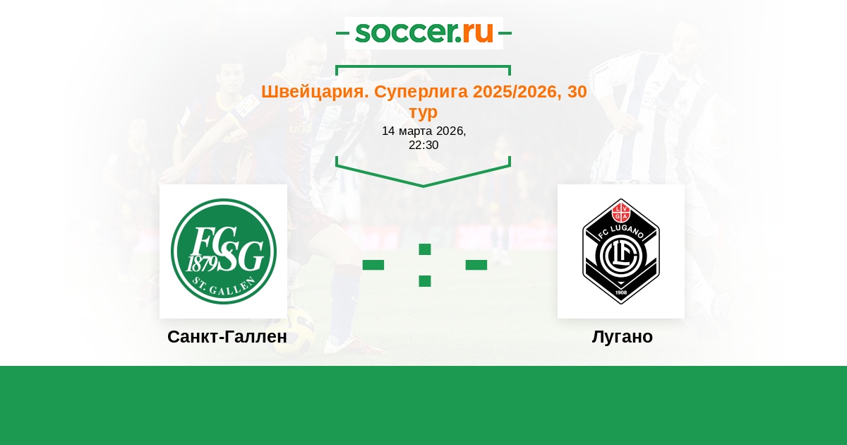 Швейцария. Суперлига 19.02.2022 Лугано Логотип футбольный клуб Лугано 0:2 Логотип футбольный клуб Санкт-Галлен Санкт-Галлен