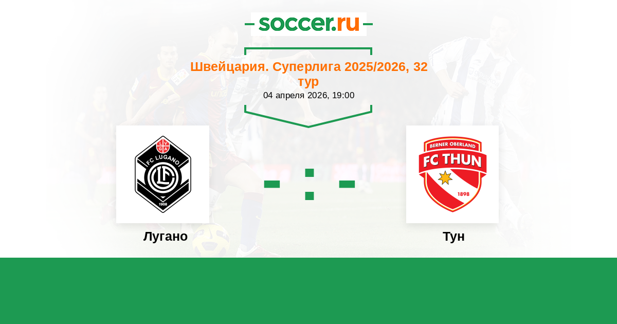Швейцария. Суперлига 09.02.2020 Тун Логотип футбольный клуб Тун 3:2 Логотип футбольный клуб Лугано Лугано
