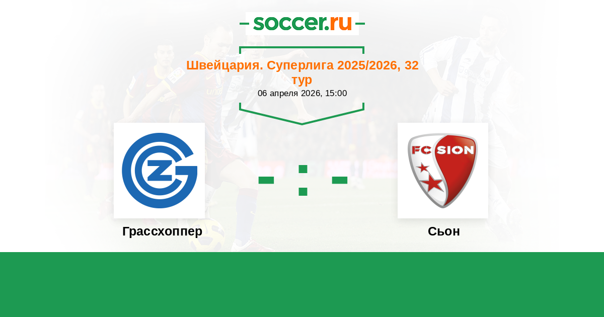 Швейцария. Суперлига 19.10.2025 Грассхоппер Логотип футбольный клуб Грассхоппер (Цюрих) 0:1 Логотип футбольный клуб Сьон Сьон