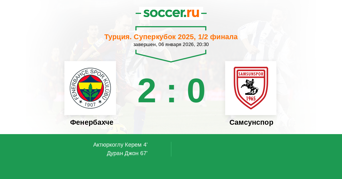 Протокол матча Фенербахче против Самсунспор