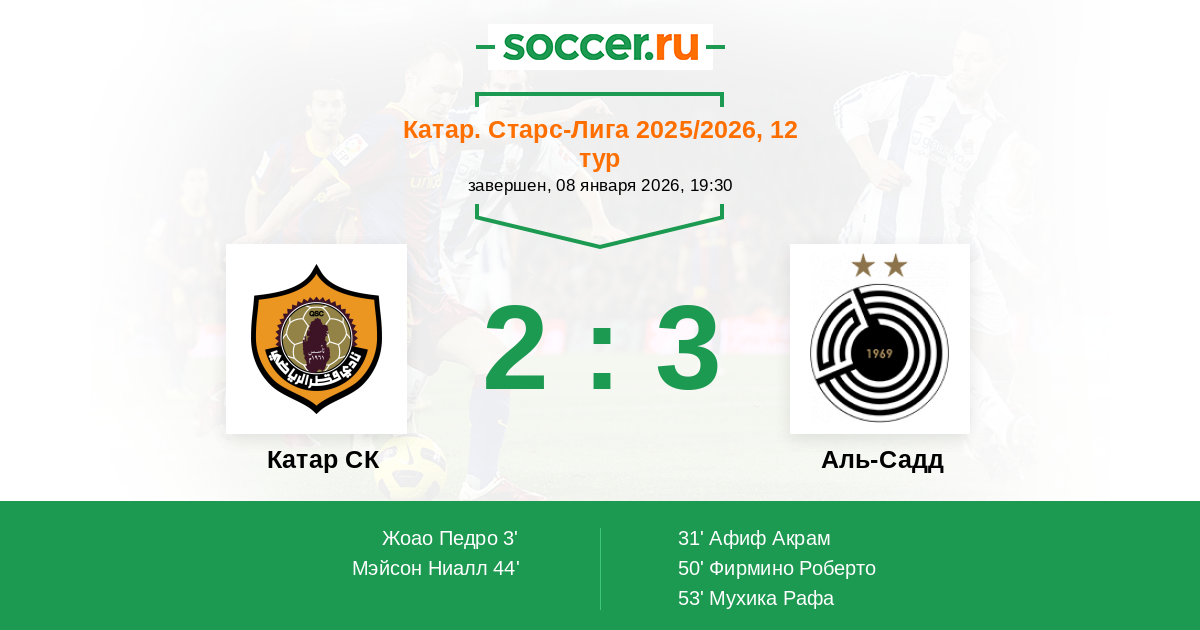 Протокол матча Катар СК против Аль-Садд