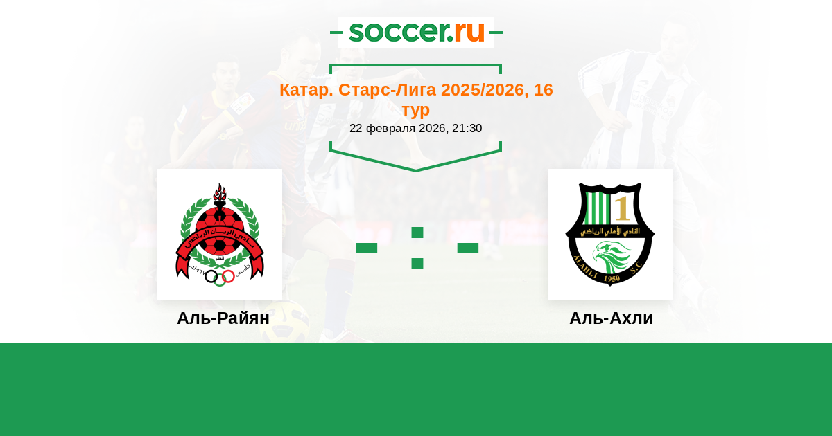 Катар. Старс Лига 13.02.2023 Аль-Ахли Логотип футбольный клуб Аль-Ахли (Доха) 0:4 Логотип футбольный клуб Аль-Райян Аль-Райян