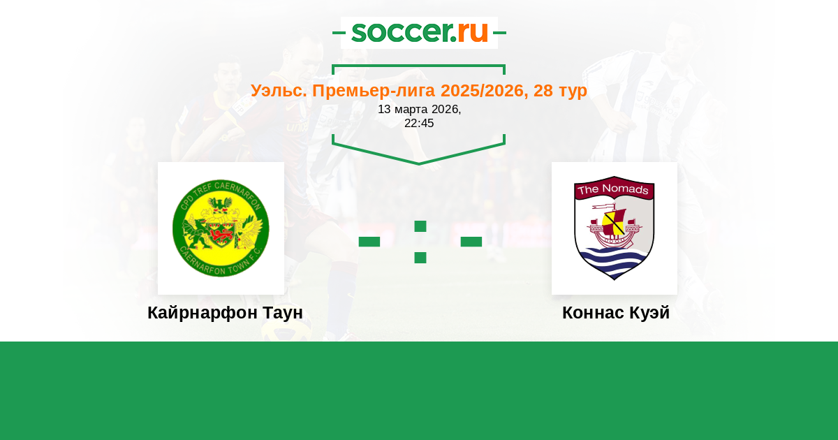 Уэльс. Премьер-Лига 15.03.2024 Кайрнарфон Таун Логотип футбольный клуб Кайрнарфон Таун 2:1 Логотип футбольный клуб Коннас Куэй Коннас Куэй