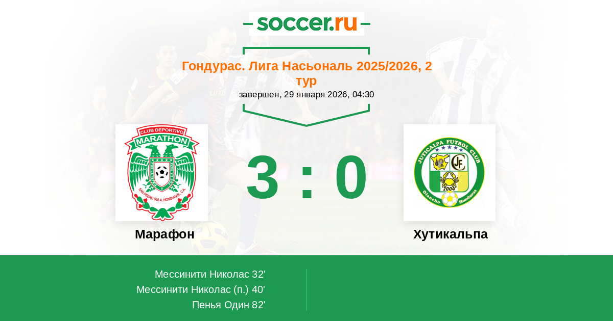 Гондурас. Лига Насьональ 26.10.2017 Хутикальпа Логотип футбольный клуб Хутикальпа 3:0 Логотип футбольный клуб Марафон (Сан-Педро-Сула) Марафон