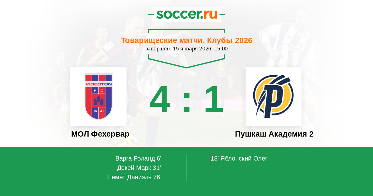 Протокол матча МОЛ Фехервар против Пушкаш Академия 2