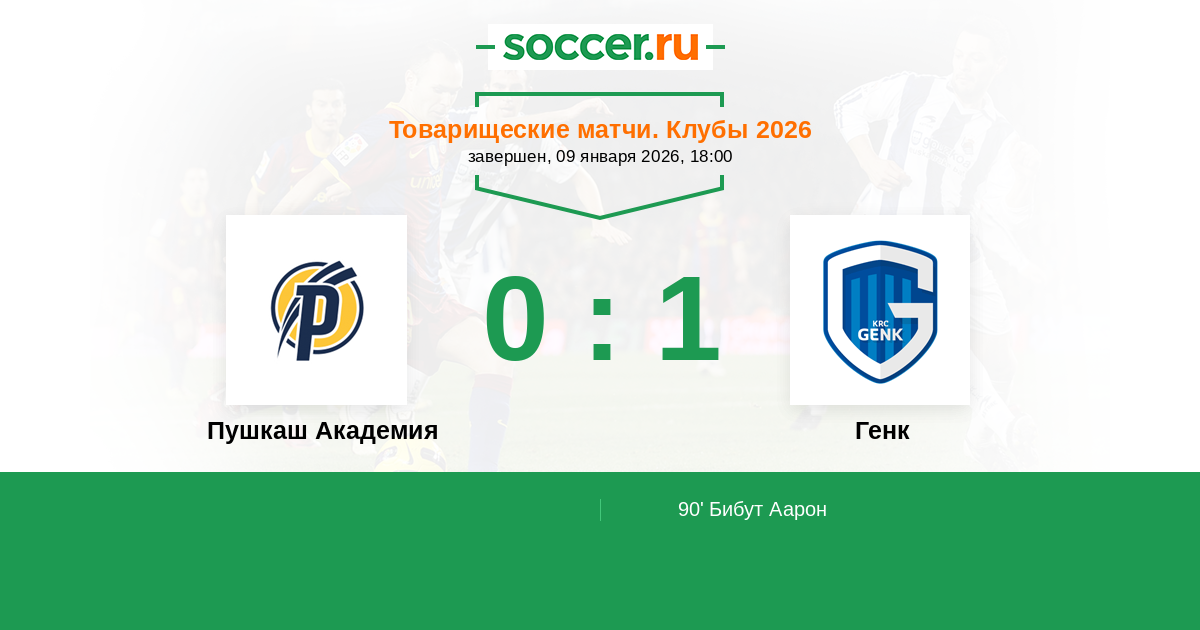 Протокол матча Пушкаш Академия против Генк