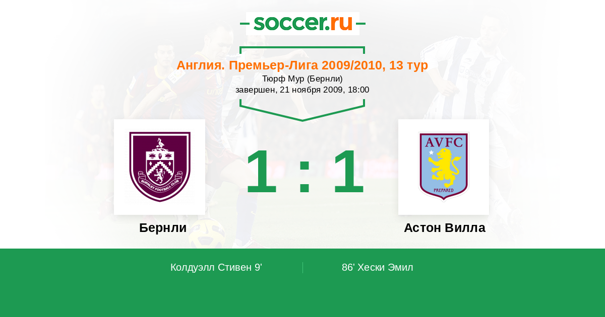 Протокол матча Бернли против Астон Вилла