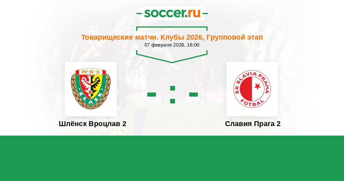 История матча Шлёнск Вроцлав 2 против Славия Прага 2