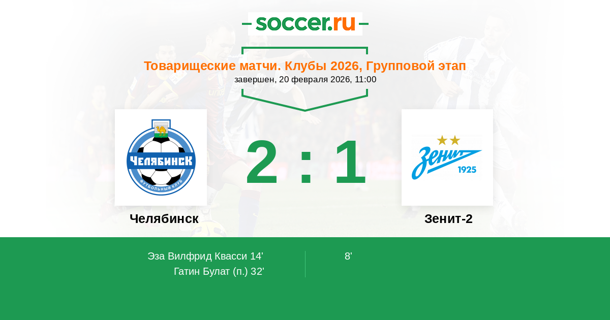 Протокол матча Челябинск против Зенит-2