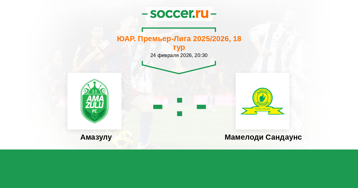 ЮАР. Премьер-Лига 11.03.2025 Мамелоди Сандаунс Логотип футбольный клуб Мамелоди Сандаунс (Претория) 2:0 Логотип футбольный клуб Амазулу (Дурбан) Амазулу