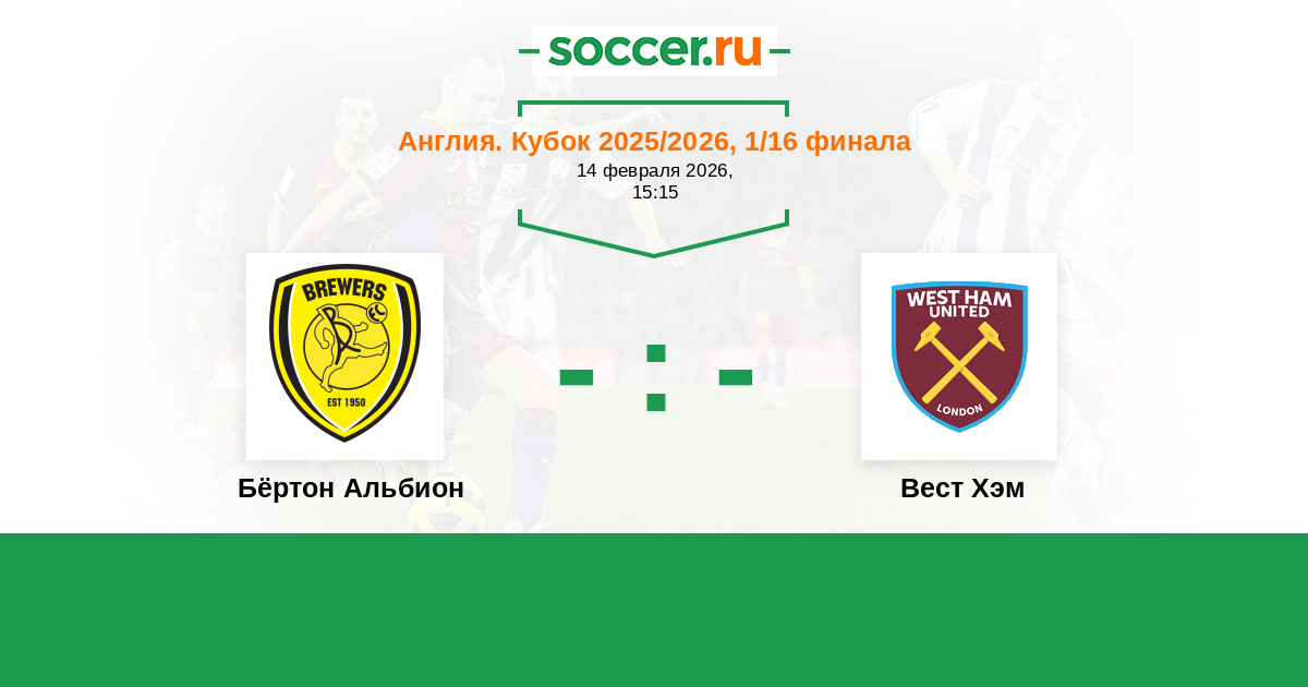 Оповещения матча Бёртон Альбион против Вест Хэм
